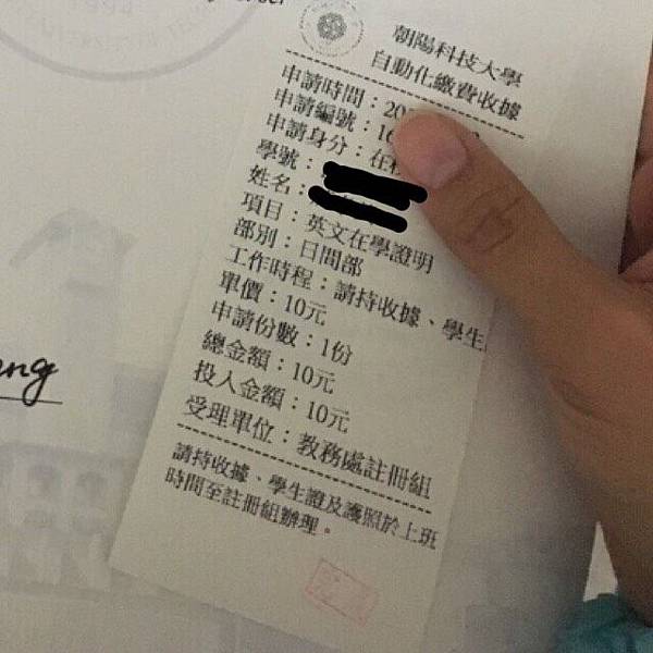 這張是小白單然後還要帶著護照去註冊組拿在學證明