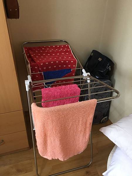 可能因為這樣所以每間房間都有曬衣服的架子吧~